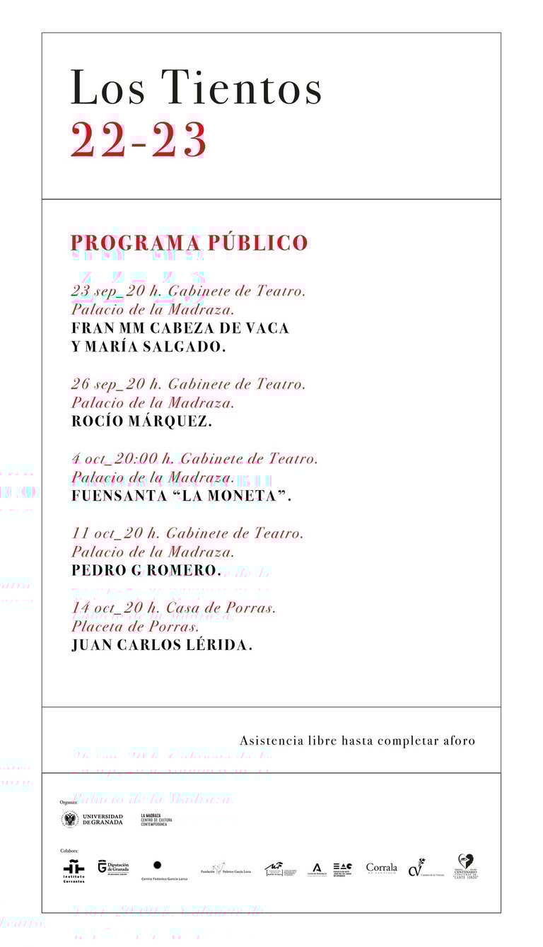 Espejo de la soledad social de Lérida, además del público, fueron las guitarras afinadas hasta convertirse en dos hilillos de plata, la luz con los hombros inclinados de la rutina gozosa y la desnudez del espacio escénico. Fue un gesto tan sencillo y marginal, a la vez revolucionario. La luz en los márgenes, en las aristas. Fue un acto de valentía, heroico decía más arriba, al mismo tiempo tan necesario. Para mi sed fue agua de mayo, porque "en verdad" mi rutina escénica semanal me lleva a ser testigo de tanto gesto vacío recargado de cosas... Hay vacíos fértiles pero el que se nos propone desde la escena flamenca contemporánea viene tan cargado de lastre (de otras artes, que llegan a lo jondo con rutina y cansancio vital, y también de este arte: las letras repetidas hasta la tortura, el mismo grupo de acompañamiento, sean o no idénticos los individuos, ya no cansino sino asfixiante). Lérida y cía. movieron unos centímetros el lugar de la danza y el toque flamencos contemporáneos iluminándonos, deslumbrándonos. Con el desolador y necesario daño colateral de mostrar la vacuidad gratuita (porque, como decía arriba, hay vacíos que no lo son), que domina en tantos "estrenos absolutos" y demás milongas de los ciclos y festivales flamencos al uso.