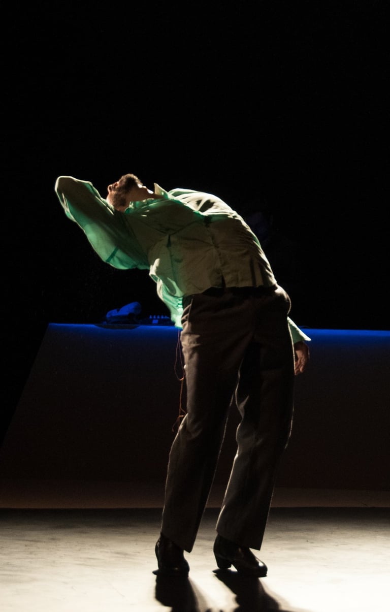 In my interest in watching the various bodies that represent the expressive and conceptual foundations of Flamenco: El Cante (The singing), El Toque (The guitarrist), El Baile (The dance), exposes me as Bailaor-Dancer, choreographer and pedagogue to discover intrinsic characters in those bodies and movements of these «characters» to dissect and expose them through a choreographic work. This I have tried to manage my capacity as researcher movement and creator of the dance, with the aim of showcasing new methods of transmission and reception of flamenco and dance, from own subject of study as well as myself. The method to follow is materialized from the realization of different approaches(acercamientos) to each of the basics of flamenco. Solo or accompanied I researched and presented each time the result of the creative process in scenic, literary or plastic formats. The completion of the last stage of rapprochement officially opens the piece.