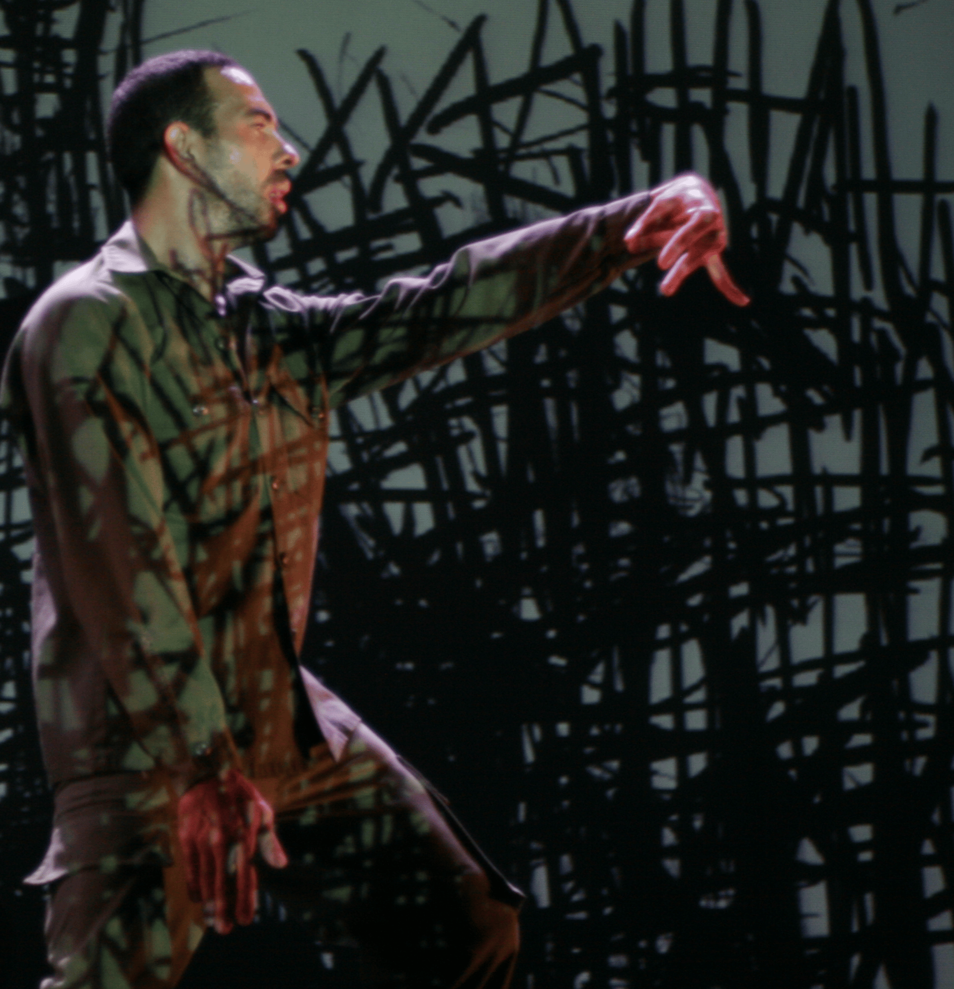 Grafía del baile. Trazo coreográfico de un cuerpo. O en el cuerpo. Un lugar de encuentro entre dos temporalidades: la del presente y la de la ausencia. Huella de la memoria, cicatriz o sendero. Fernando LR Parra.